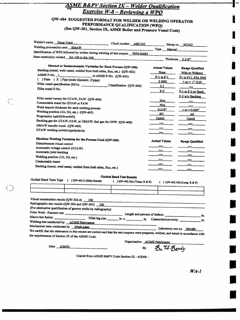 Asme section 9 welder qualifications.